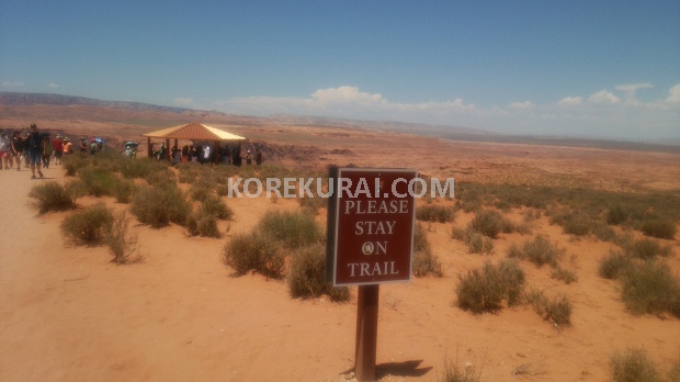 駐車場からホースシューベンドを見るには約15分ほど歩いていく必要があります。その間、直射日光を浴びながら、柔らかい砂の上を歩いて行かないといけないので、体力を奪われとても疲れてしまいます。必ず帽子と歩きやすい靴と水の入ったペットボトルを持っていきましょう。