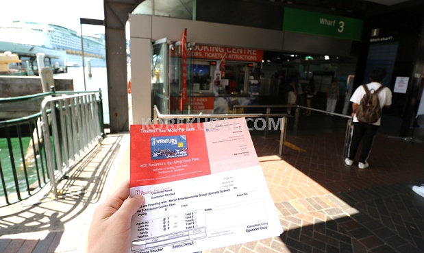 Circular Quay Wharf(フェリーターミナル)は4~5つ程あり、その内のWharf 3にあるチケットカウンターでチケット引換券を購入できました。この引換券を持って各観光スポットの入場カウンターに行くと、入場チケットを手渡してくれます。