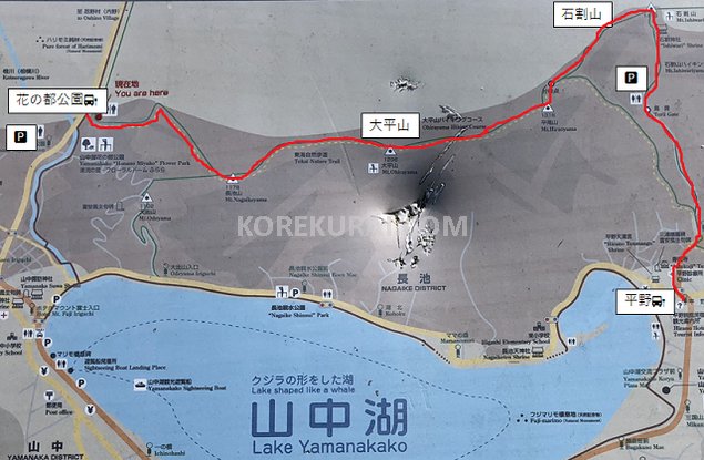 忍野八海方面や花の都公園方面の分岐が時々出てきます。大平山に真っすぐ進みます。