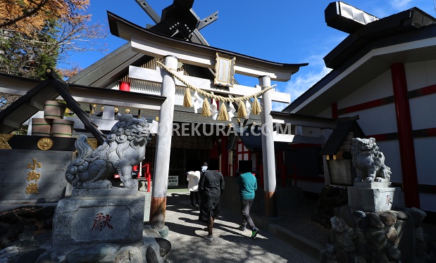 富士山5合目には小御嶽神社(こみたけじんじゃ)という神社があります。売店の裏通りが参道です。創建937年で天狗様が祀られています。