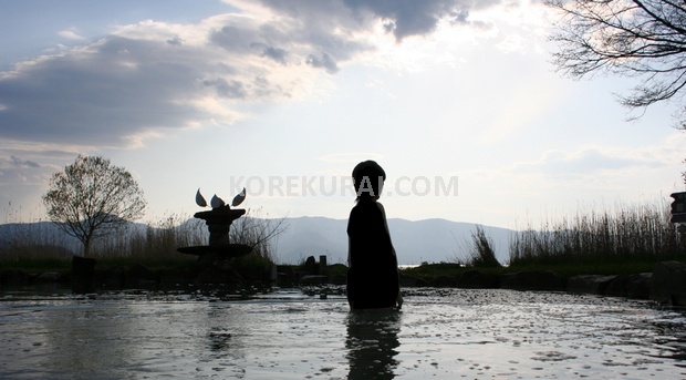 温泉から数歩歩けば、湖が目の前に広がります。景色は良かったです。こんなかんじで湖を眺めていました。