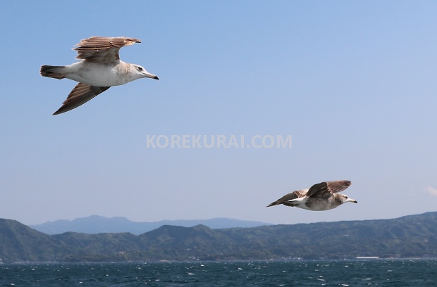 写真ではカモメとの距離が若干遠くに見えますが、肉眼だともの凄い近いところを飛行しています。この写真よりもっと近い距離でした。