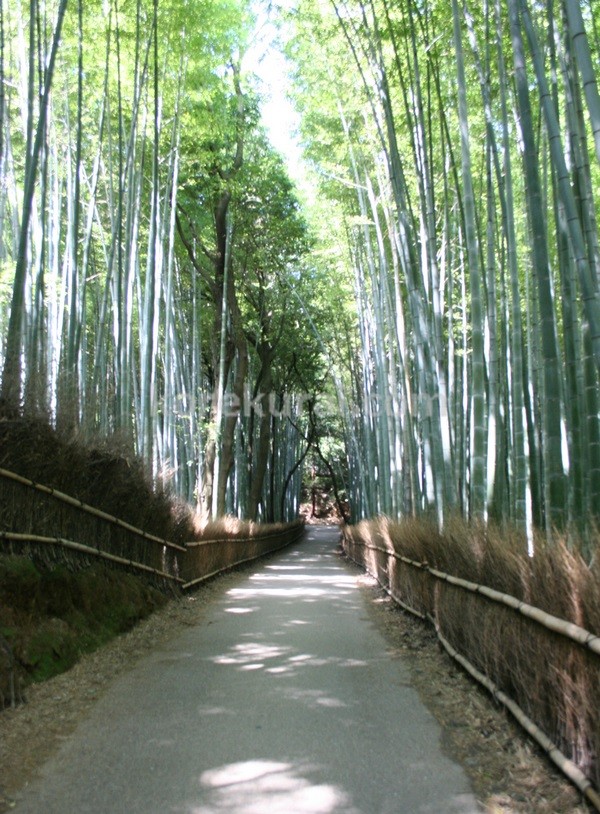 見上げれば青い竹林に囲まれ、上から降り注ぐ太陽の光が夏でも涼しい気持ちにさせてくれます。 この通りは1000年以上から変わらない風景を魅せているそうです。