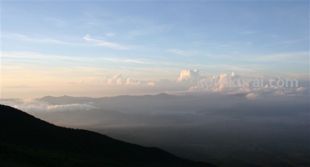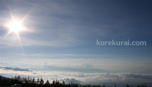 5合目からの景色も綺麗です。下方に雲海が見えます。晴れていたので暑かったです。