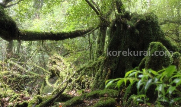 くぐり杉を抜けると白谷小屋があります。トイレ休憩が可能です。 その先にもののけ姫の舞台となった苔むす森に着きます。