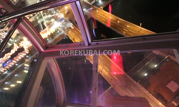 シースルーの観覧車は床も席も全て透明。高いところから下を覗くとゾクって感じがするかなと思いきや、夜だったのでそんなに恐怖心を感じることはありませんでした。