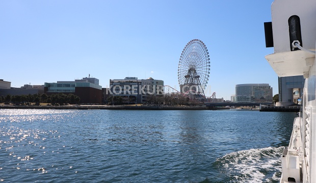 横浜駅からコスモワールドの観覧車に行くならシーバスがおすすめです。 歩いて行くより、船から景色を眺めながら目的地近くまで行けるのでとても便利。
