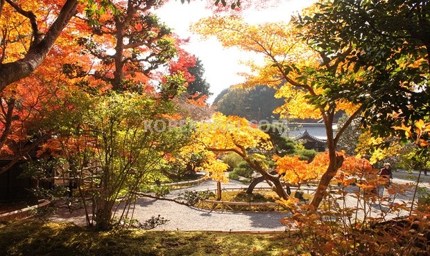 昼頃になると恐ろしい人混みに巻き込まれるのでご注意を。 朝はとても清々しく天気が良いと曹源池庭園のこんなに綺麗な紅葉が見れます。