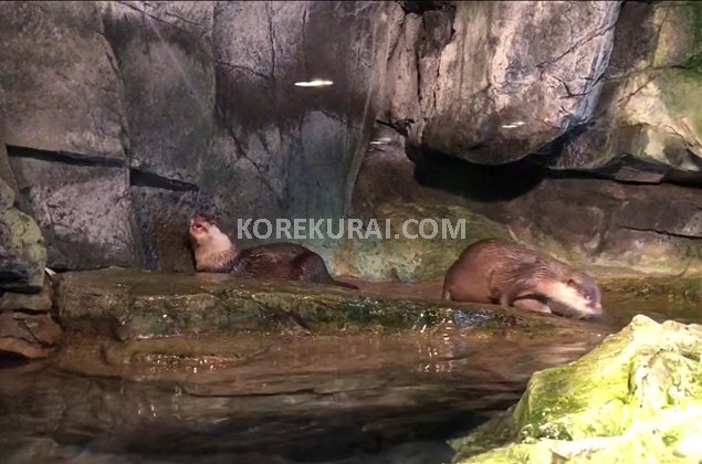 上の写真のカワウソは、いきなり水の中にダイブして、狙いを定めたお魚を見事キャッチしてました。カワウソ泳ぎ速い!
