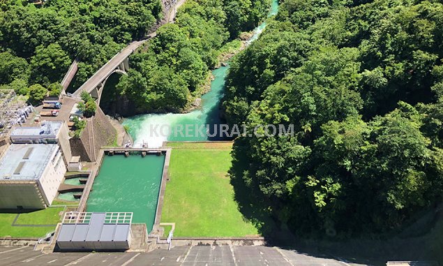 水と緑のふれあい館から歩いて約5分位です。エレベーターが無いので3階建ての塔を階段で登らないといけないですが、窓越しにダムの谷側を見下ろすことができます。