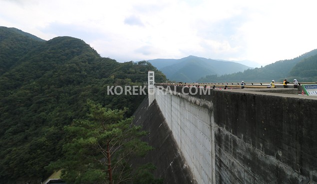 ダムの歩道は意外と長く、長さは350メートル以上。水と緑のふれあい館から向こう岸まで歩くだけで結構距離があります。